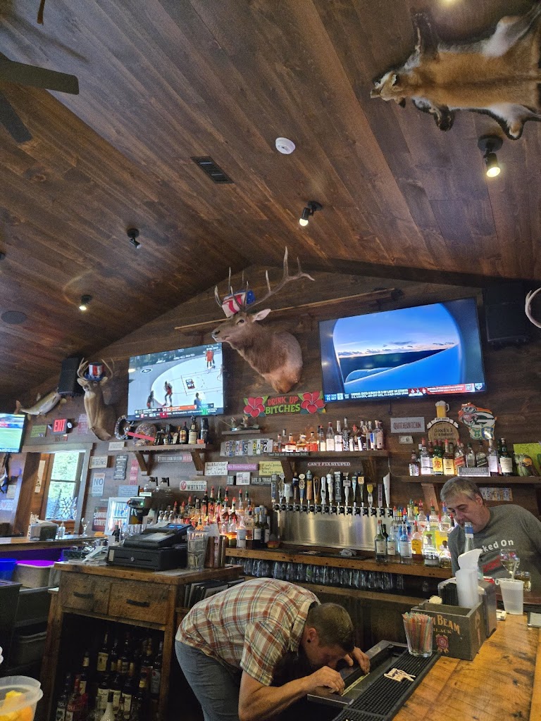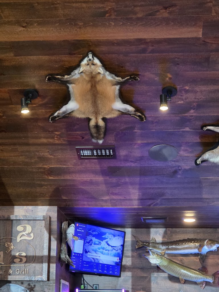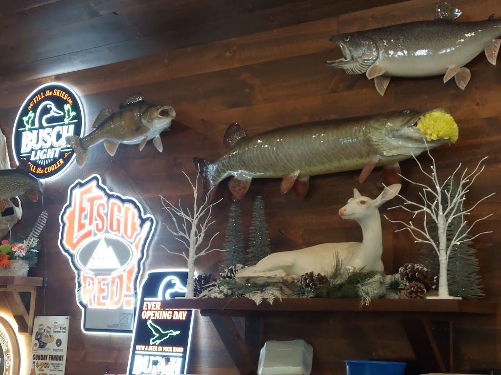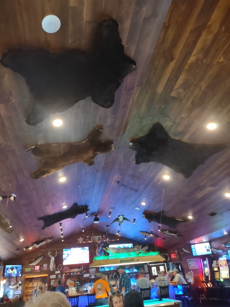 I visited this great bar but didn't eat. This is a one-of-a-kind place to stop if you like hunting and fishing.