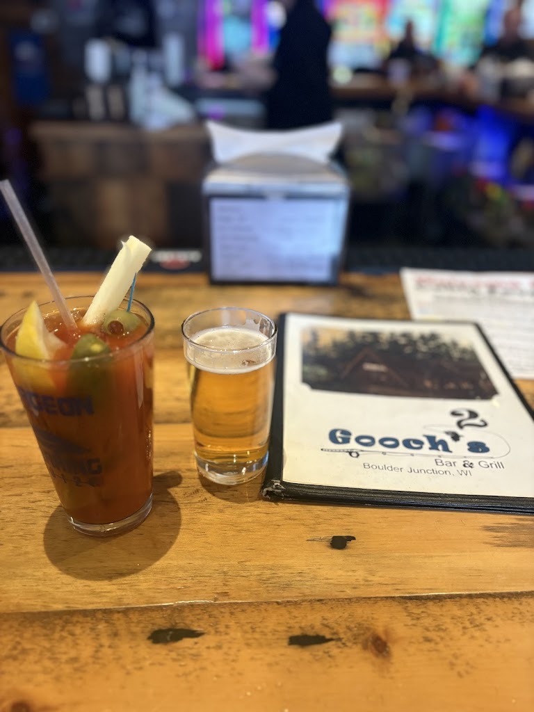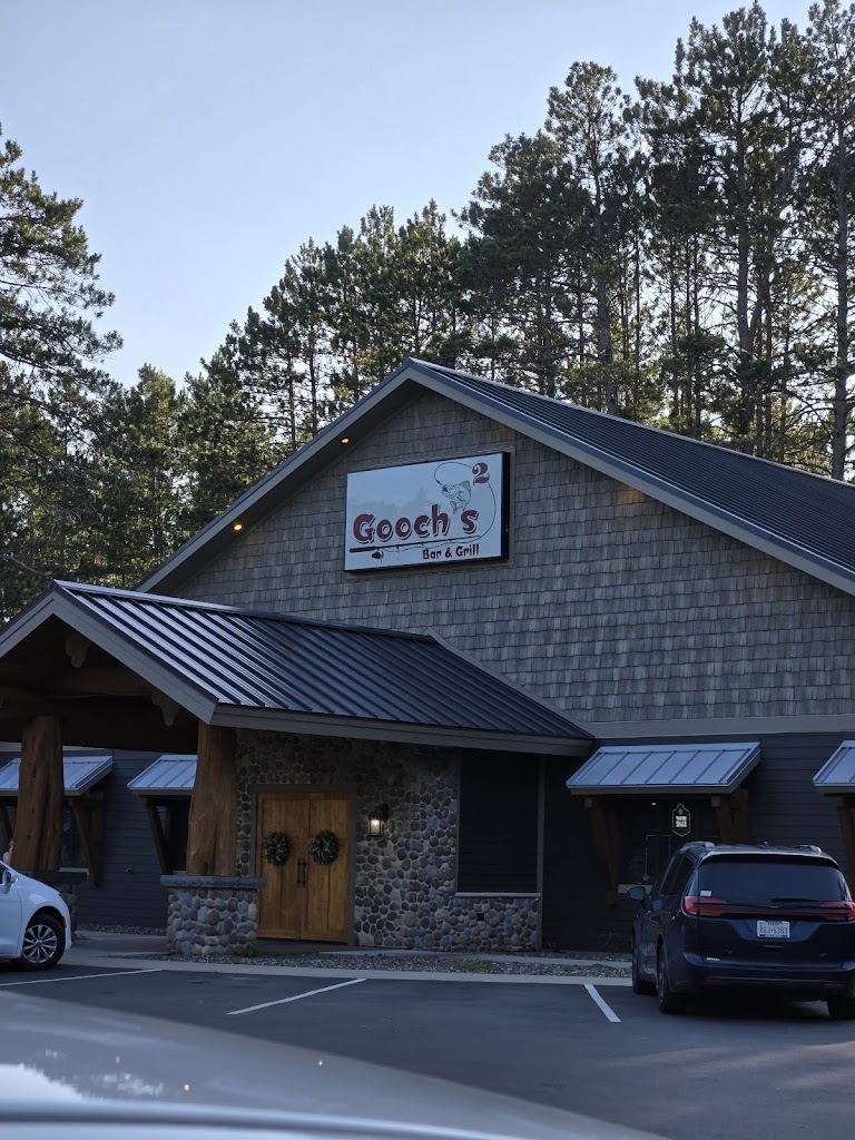 Northwoods atmosphere at Gooch's. I had prime rib and it was delicious. I usually don't eat it all and end up taking the remainder home...not here.. I ate the entire thing. My dinner guest loved the Brandy old fashion sweet cocktail the bartender served ip Will be back for another night out for dinner!