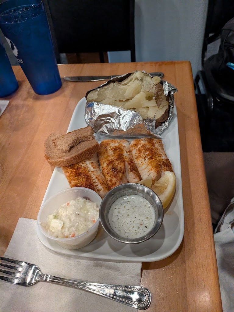 I have had dinner on two occasions. One was a broasted chicken that I was looking forward to; however, I was very disappointed. The chicken tasted as though the oil was old and way overused. The second was the Friday fish fry, which was nothing more than three fish sticks, and terrible at that.