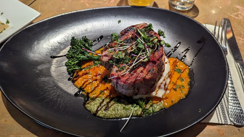 Wonderful upscale restaurant with a hometown feel. The owner is personable and genuine while the food takes its cues from his world wide travels. Charred Ribeye and Thai peanut tofu were wonderful. And, there’s a kids menu!
