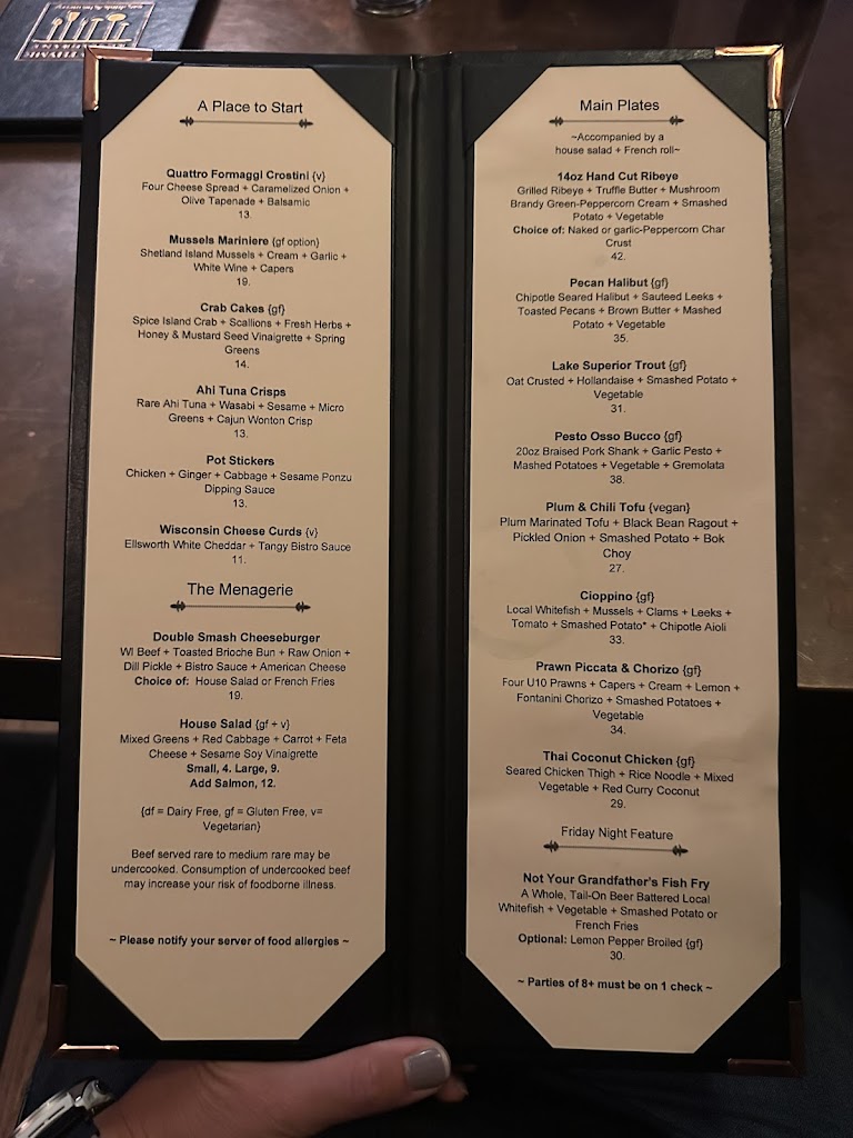 I absolutely love this spot. I think it’s some of the best food you can find in NW Wisconsin and Northern MN. There’s a reason they’ve been in business for so long! We started with the duck wontons which were lovely and generous in portion size. I had the pistachio encrusted whitefish and that was cooked perfectly. The dish itself was so well balanced and delightful - I recommend that dish! Even the side salad was delicious! My husband ordered the trout and also loved it. My son ordered the cheeseburger from the kids menu - I sampled a bite and let me tell you, it made me want to come back again and order the double smash burger. They excelled at a kids cheeseburger - that means something, y’all! Overall a great experience - don’t be afraid to take the kids!