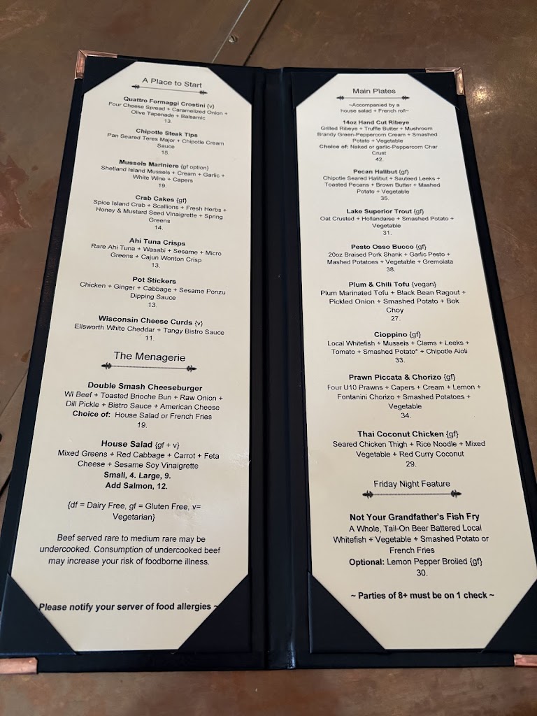 Amazing food, cool atmosphere, and great wait staff. Probably the best meal we had while traveling in Northern WI