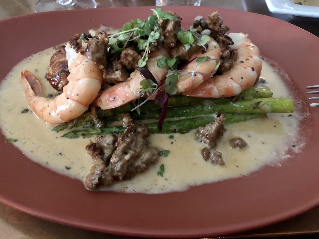 We enjoyed our meal very much. We made the mistake of accepting an 8:00 dinner reservation and we were seated next to the bar. Very loud and hard to have a conversation. The Pistachio Shrimp Ravioli was delicious. Don't let the Pistachio decide against ordering this dish.