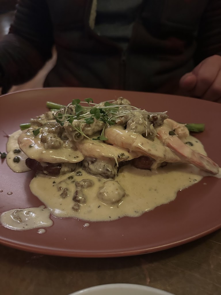 I am here to add to the long list of amazing reviews for this place— believe them all! The service, atmosphere, and food were all absolutely stellar. My husband got the Parmesan encrusted ribeye and I got the prawn piccata with chorizo. Both were otherworldly in their excellence. The lemony brightness of the piccata was perfectly balanced by the smoky roundness of the chorizo, accented by the salty capers and creamy smashed reds. The ribeye was mouth-wateringly tender and incredibly flavorful. Crème brûlée topped with a fruit compote was the perfect ending to what was easily one of the best meals we ever had. Three cheers to the owner Ben for creating an environment where good people thrive creating beautiful experiences for their guests. Anna our server was also wonderful. We plan to return!