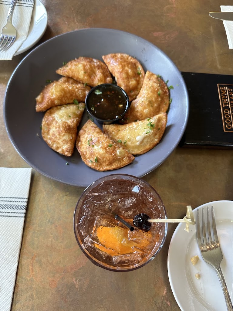 Wow! We are so glad we got to eat at Good Thyme during our stay! We did not make a reservation but we were still able to get bar seating- there were about 15 chairs at the bar so plenty of room. The food was incredible! We shared the chipotle steak bites and the potstickers as an appetizer. For dinner, I got the pecan crusted halibut and then for dessert, the ice-cream cookie sundae. Reservations are strongly encouraged, but this place is well worth the wait and will not disappoint!