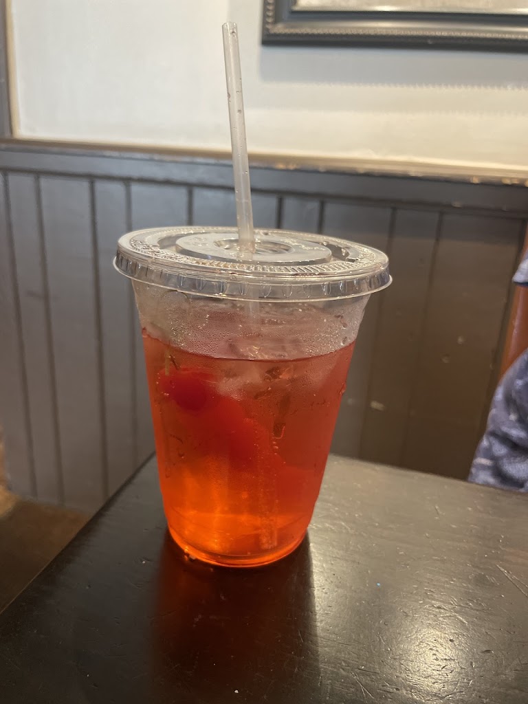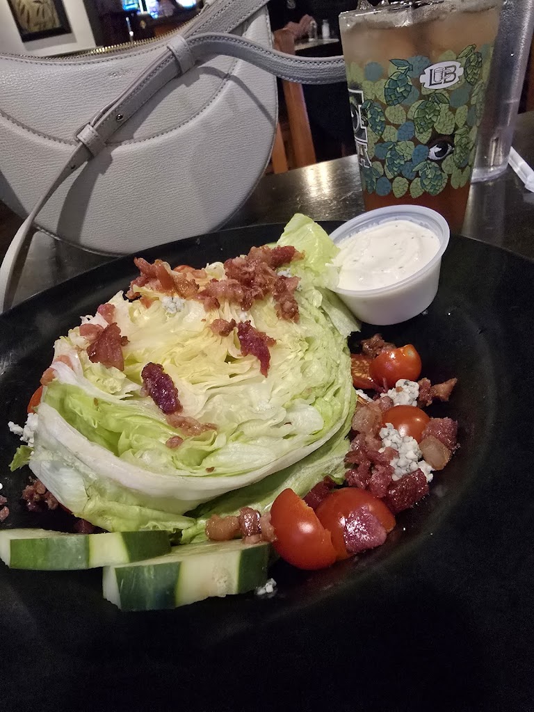 Now the food. I’ve never had greasier food in my life! The fried pickles came with about a cup of oil and the burger had a bun that was just absolutely drenched in grease. It ruined the burger because we ended up having to discard the soggy bun. Burger was undercooked also but tasted okay. The French fries were also swimming in grease and had to be patted down before eating. I ordered a chicken salad and the chicken was a tab rubbery and the French dressing very watery. To top it off, I got food poisoning about an hour after we left 🫠 thankfully I had enough time to recover before the wedding.