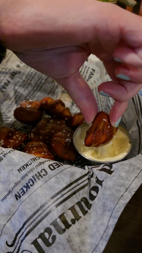 In to golf with some family and friends. Walked here from our hotel. Thought it would be a great spot to grab some food and watch the first NFL game of the season. Unfortunately they lost the remotes to the TV and could not change the channels. The service was okay but disjointed. I had an individual pizza that was good and tried the wings which were good size with a mild but tasty buffalo sauce.