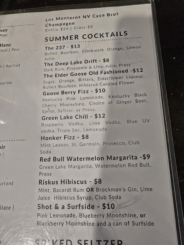We’ve been to the Goose Blind many times while visiting Green Lake. We continue to enjoy the bar.