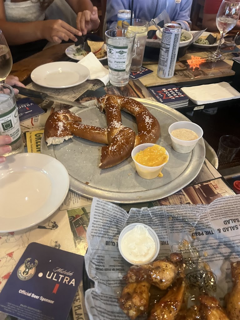 Awesome cheese Curds! And a great Shirley Temple! Deliciously huge pretzel
