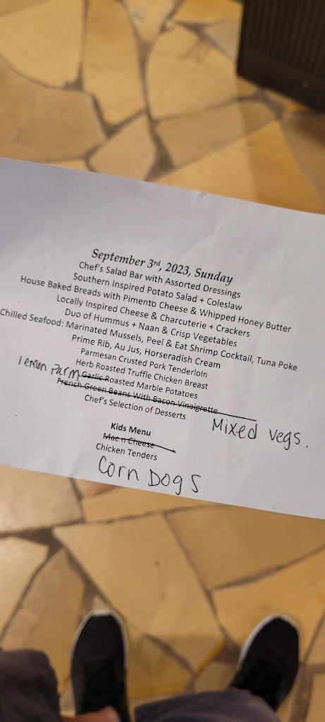 Food was exceptional for the cost. Dessert table could've been a bit better. Crab legs were delicious!