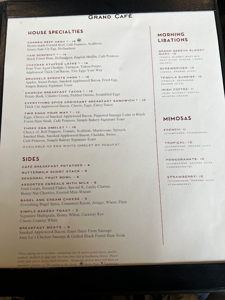 Another great visit to the Grand Cafe at the Grand Geneva resort, great staff, excellent food, very reasonable prices!