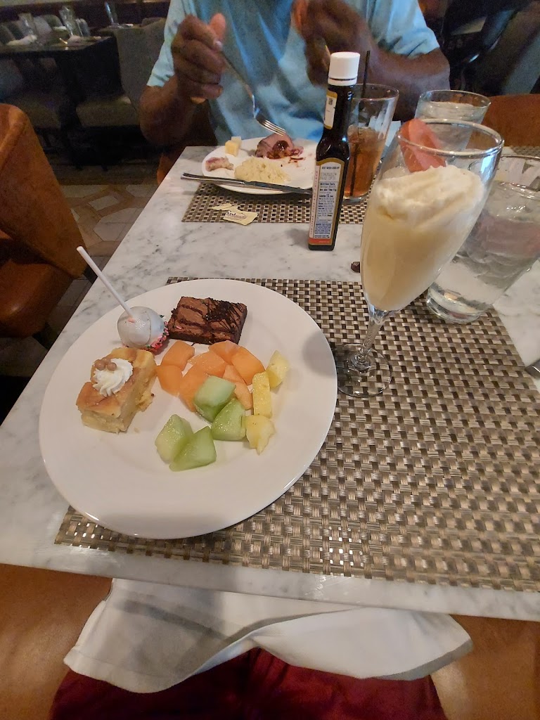 Would not recommend. We only ate the buffet, so I can not speak to anything else. Everything looked great, but was far from it. It was cold and tasteless. After sampling all the buffet food we decided to just turn to the dessert table. Several of my desserts were still frozen in the middle. It was fair..at best. The set up was very poorly designed for sanitary reasons. We had a very hard time get any drinks or refills. Seemed to be a common theme with the other people in the restaurant. I don’t think one person cleaned their plate even those who did not choose the buffet option.