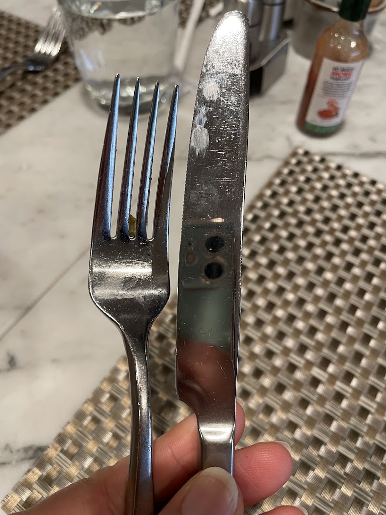 The meat carver was trying his best with what he had, but it was a bit awkward watching him struggle with the fat on the Prime Rib.