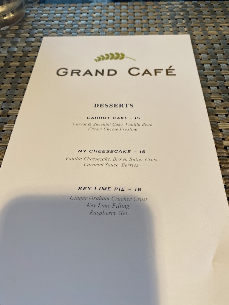 My wife and I went there around 6pm on 12/27/2019 and the restaurant was empty. We asked to get seated without reservations and the hostess said there was nothing available until 7. This restaurant is large and seats lots of people and has plenty of tables that only seat 2 people. We walked around and looked at the decorations for 20 minutes or so and hoped they would contact us before 7 as the place was still empty. We decided to sit outside of the Grand Cafe for the last 35 mins and just see what was going on. Maybe we were missing something.