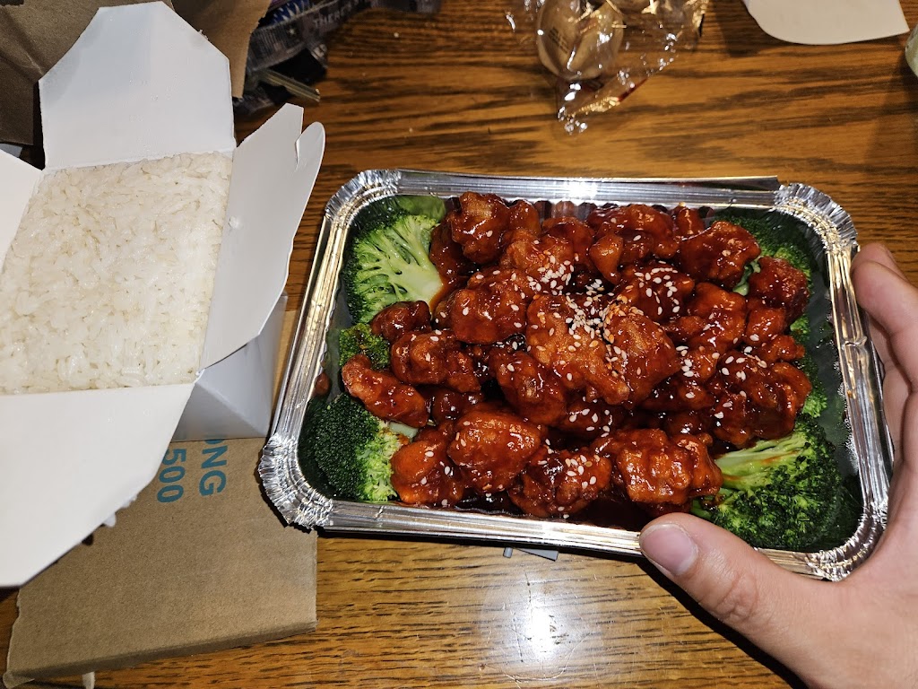 My food 100% tasted a day old,like they warmed up food they had left over from the day before. The rice was chewy and the chicken was tough and chewy. I will never go back. So disappointed 😞! I ordered General Tso"s ..ended up throwing it away. Huge waste of money!!!!