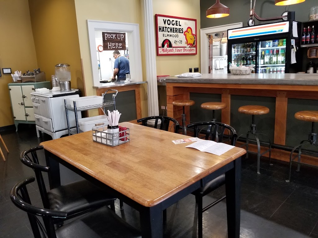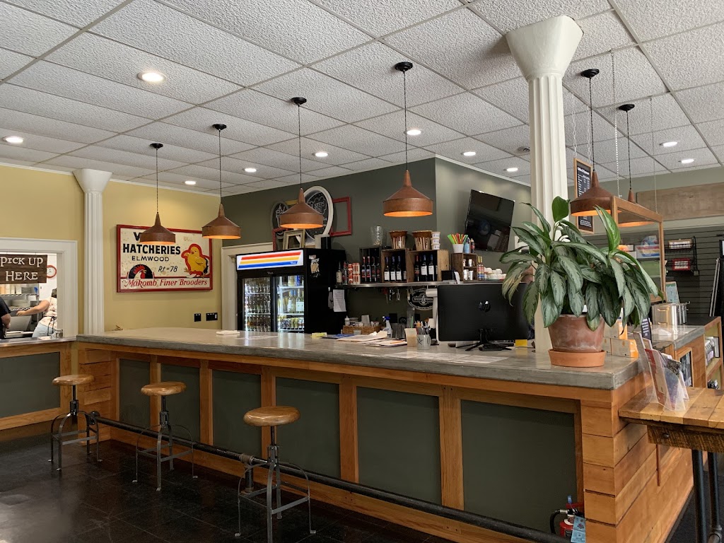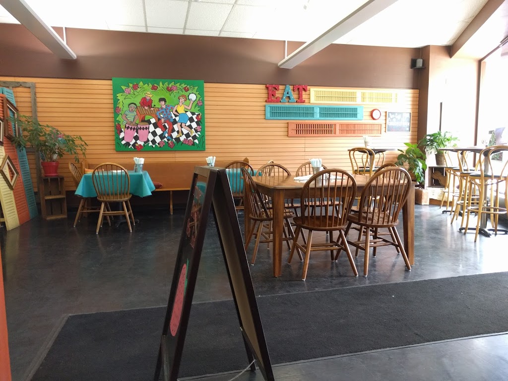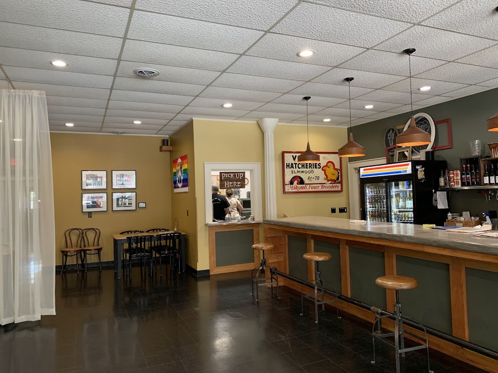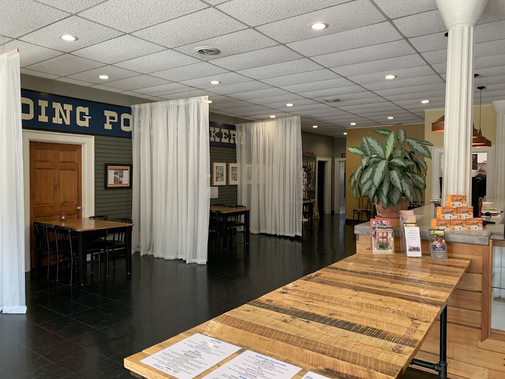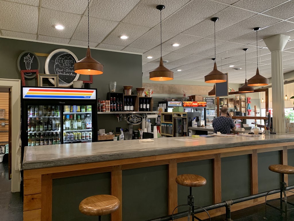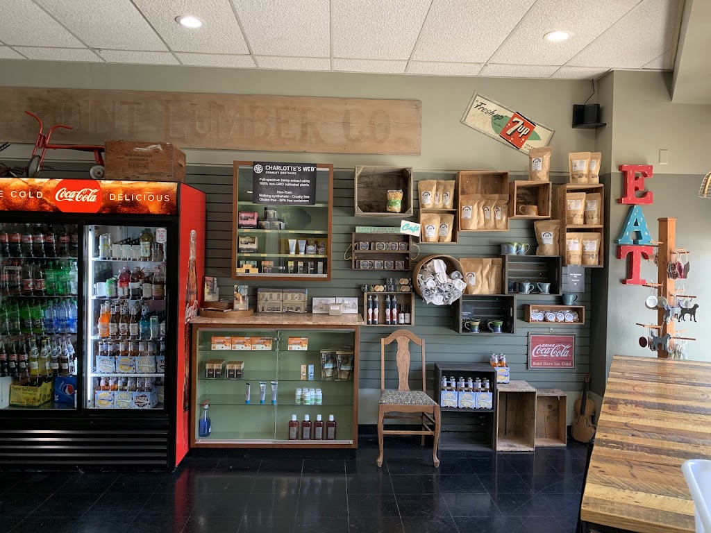 Sandwiches, soups, mac&cheese, coffees, teas and nice views of the main drag through town. Generous portions. Friendly staff. Order at front counter and pick up from rear kitchen window.
