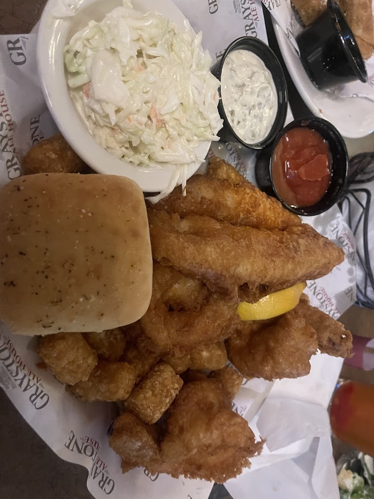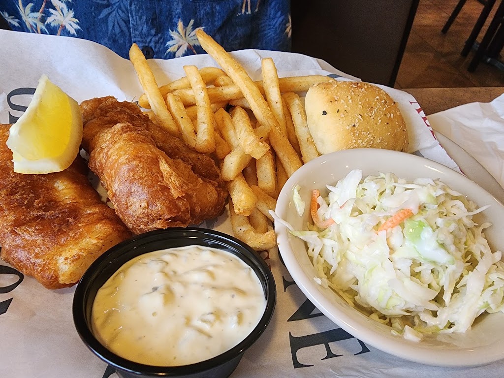 I will start out positive. The drinks and service were good. The food was not good. Ribeye was 28$ and tasted freezer burned. Just aweful. The cod was soooo greasy like it had sat in the oil for an hour . The coleslaw horrible and the fries were good. I do not recommend this place. A 78$ disappointment for sure .