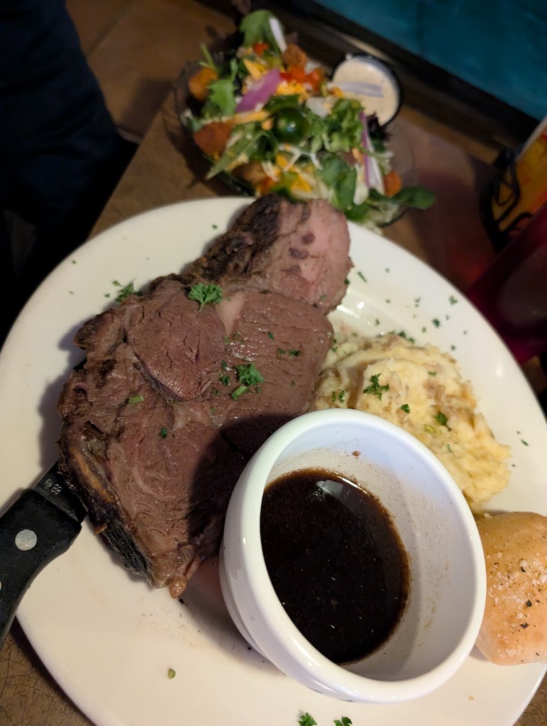 Was our first time here and we had heard good things. The prime rib dinner and chili were excellent. The brussel sprout appetizer was undercooked. The cheesesteak was dry and should have had sauce. We would have had more drinks but our server was MIA most of our meal. Oh well.