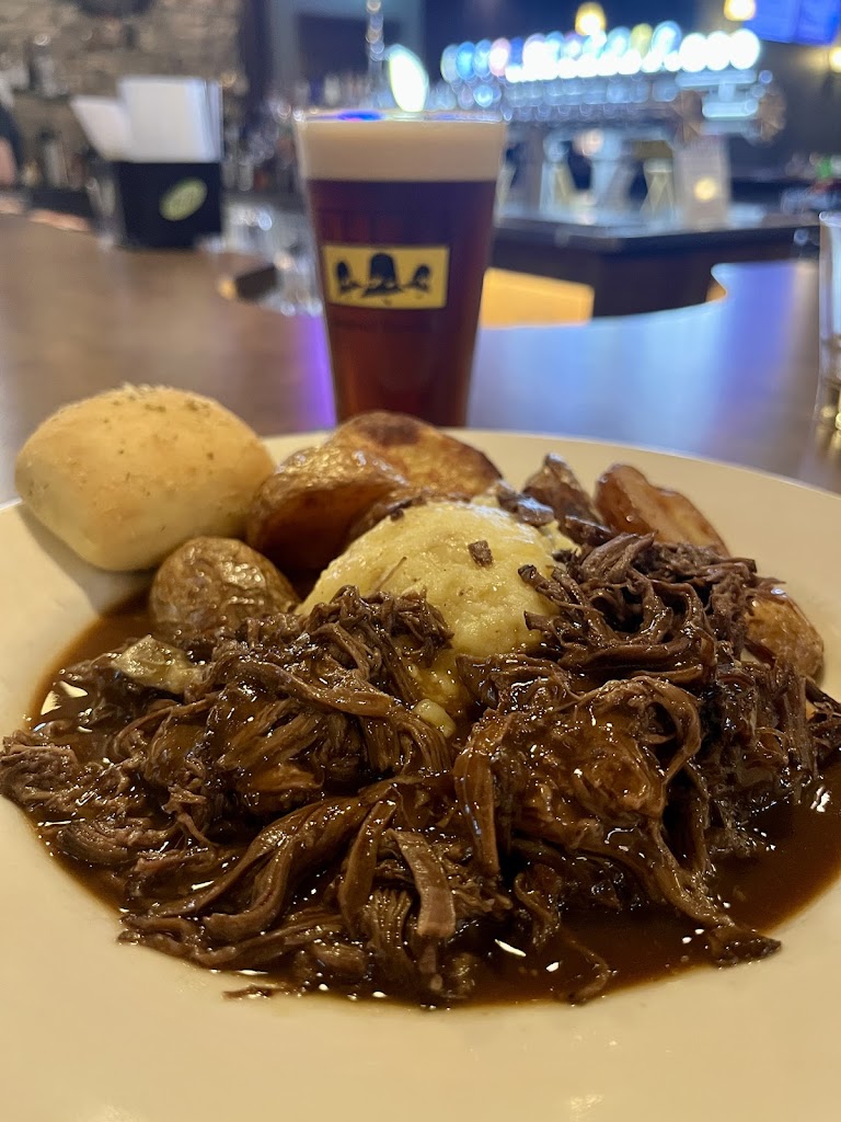 The mac and cheese with fried jalapenos and burnt ends was my husbands favorite. He raved about how good his food was and that says alot coming from him, picky eater that he is. My pot roast with garlic mashed potatoes and charred brussell sprouts was excellent. The meat was melt-in-your-mouth tender, potatoes and sprouts were perfect.