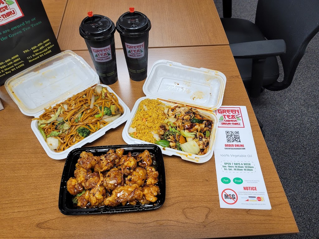 I'm not usually a fan of fast food Chinese food, but Green Tea is an exception. There is usually a bit of a wait for your food, and that's because they make it fresh to order. Their Crab Rangoons are some of the best I have had in the Green Bay area. They are large and full of flavor. The beef with garlic sauce has large pieces of beef with an equal amount of vegetables that aren't overcooked and mushy. The fried rice is also very good and is not dry like most places. General tso chicken is also good. It can be made more spicy, if that's your thing (like me!). The chicken is chicken and not just breading with sauce. Meals can be ordered with regular white rice or fried rice.