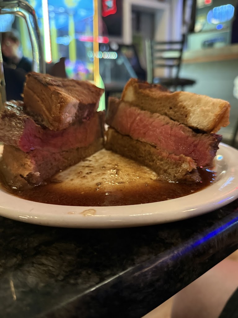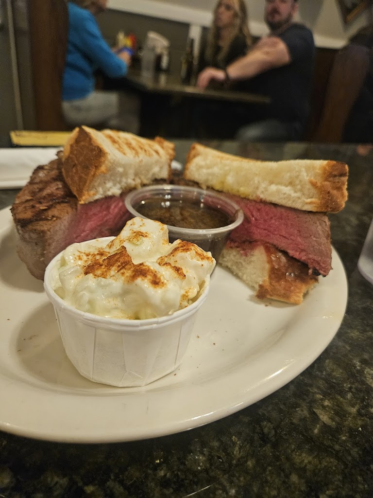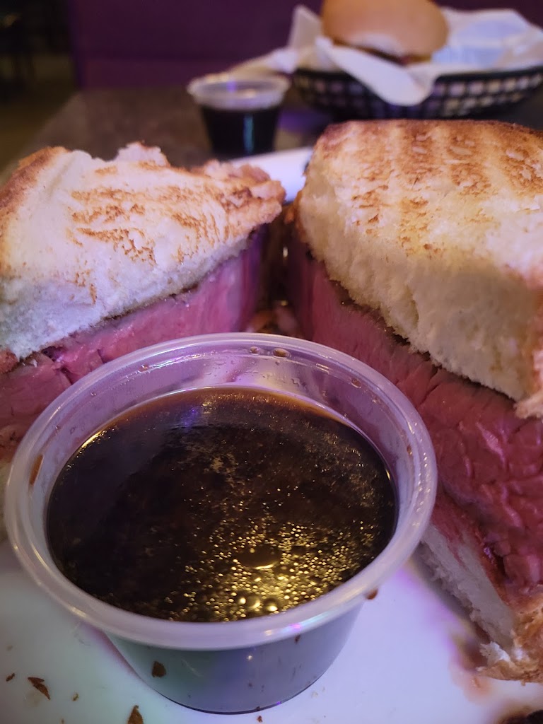 Their prime rib sandwich is phenomenal. The service was good but our waitress had too many tables at once and was way overloaded. The atmosphere was great.