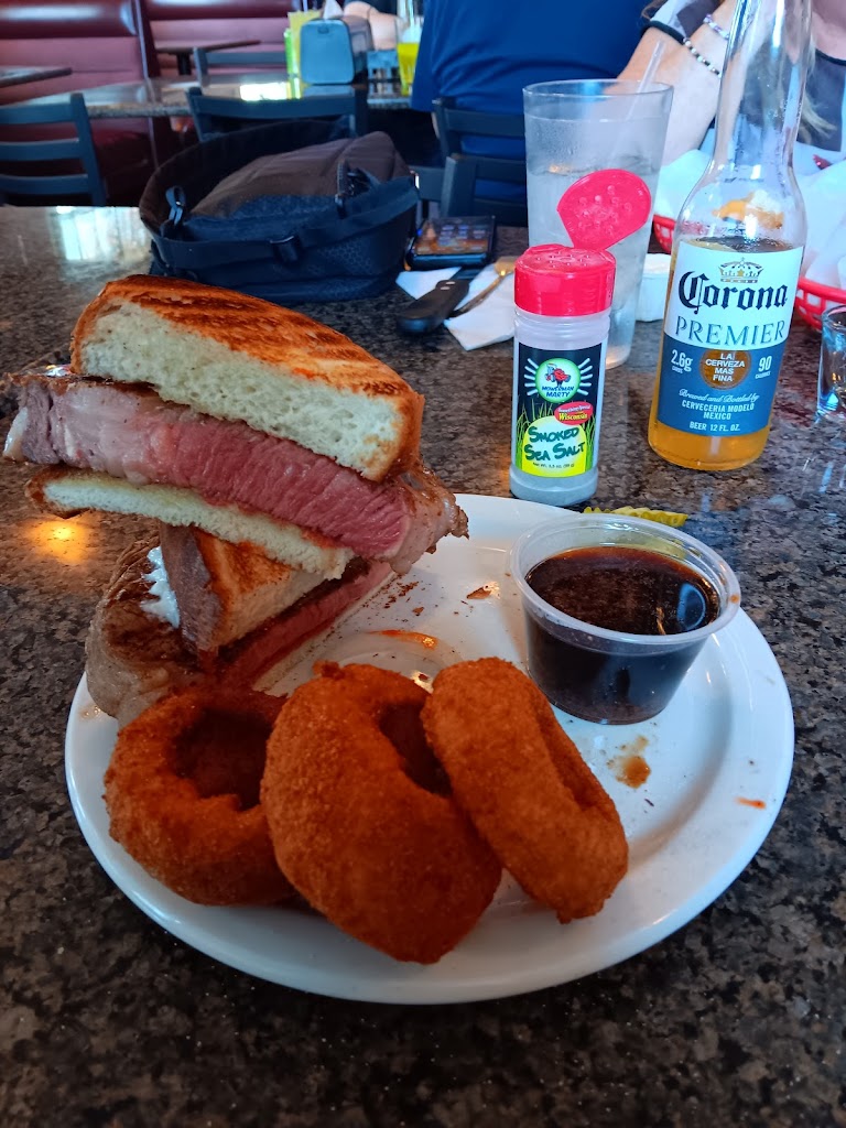 We had the prime rib sandwhich and the onion rings as well as a few beers.