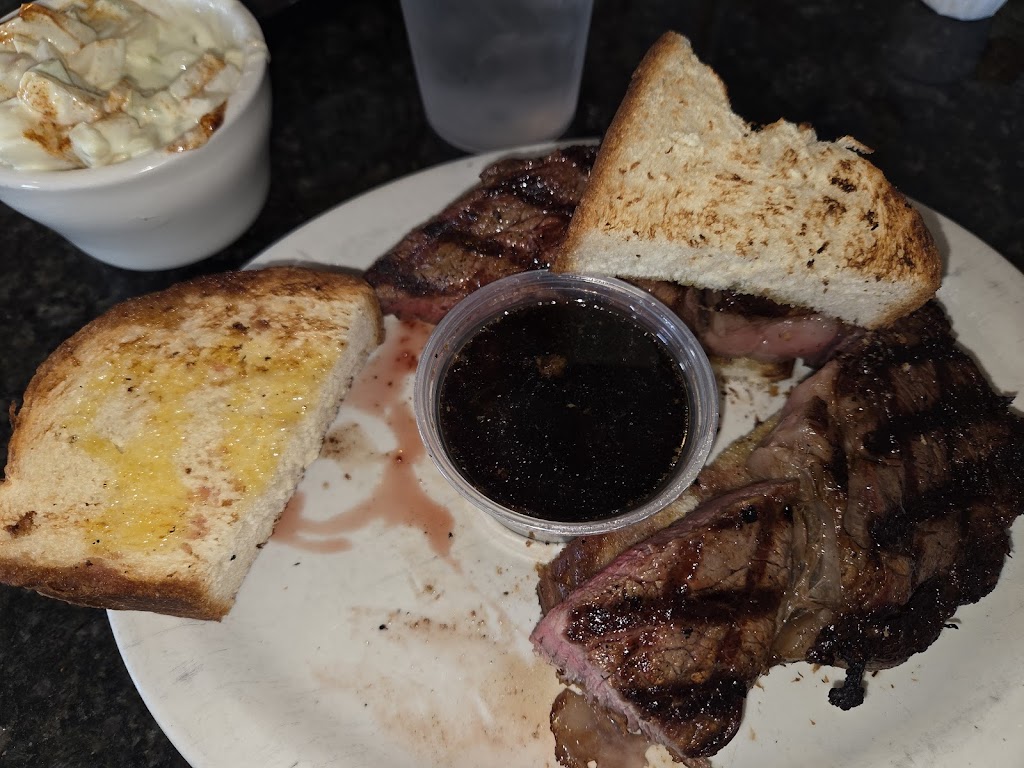 Our waitress was awesome and let me say she was working a full dining room full of people by herself running her buttons off and still kept up on everything hope they pay her well steak sandwich was great more than most can eat