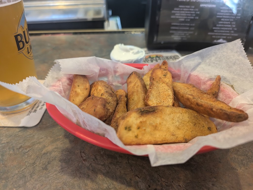 The prime rib sandwich was good. I got the “meaty mix as an appetizer”. It had average school lunch mini corn dogs fries and tv dinner chicken nuggets. It also had wings but you get charged extra for sauce. Definitely under staffed. Pretty expensive to