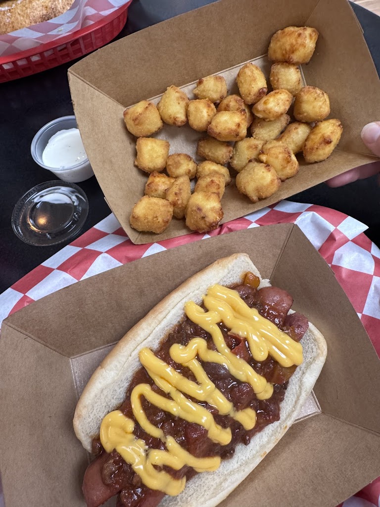 Thoroughly enjoyed lunch at GR’s. We had the chili dog, shawarma wrap (great recommendation!) and of course cheese curds. Everything was delicious. It’s counter service and they bring the food to you. Tables inside and a few outside. Next time we will top it off with ice cream or a cookie!