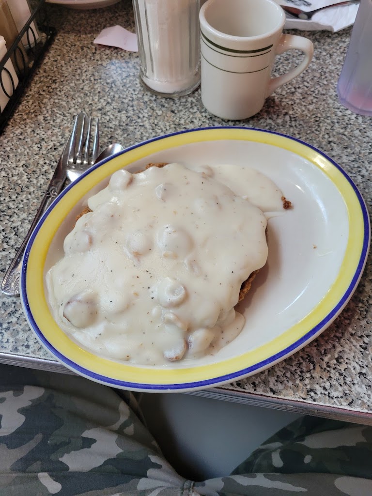 Traveling. Wonderful food, great service. I had the salmon skillet and it was great! Good pancakes. Would love to try their Friday fish fry dine day.