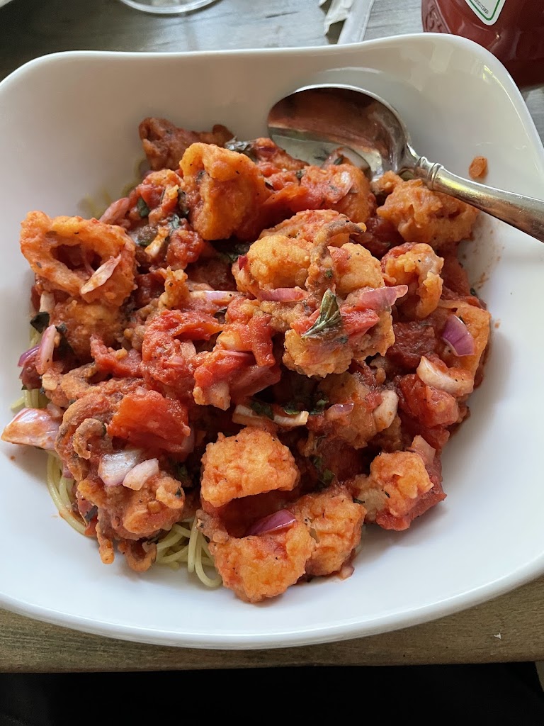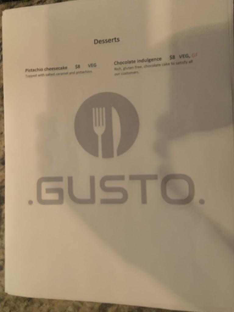 The Caprese Skewers were really tasty! They were one of their appetizers! Very refreshing! For my entree, I had the Bari Calamari. It wasn’t my favorite calamari dish I’ve had. It needed more seasoning. I also thought that it was breaded when I tasted it. In my opinion they should sautée the Calamari in olive oil and the sauce. They should leave the breading for the calamari appetizer. Talking about the Calamari Appetizer, it was very tasty! Their dipping sauce for the calamari wasn’t your regular marinara, it was spicy, sweet, and a bit tangy! I believe it was house made which is awesome! My favorite thing I had from their menu was the Pistachio Cheesecake! Now that is a must have when visiting Gusto! This restaurant just opened up in new management inside the Whistling Swan Inn and I’m excited to see where their journey takes them!