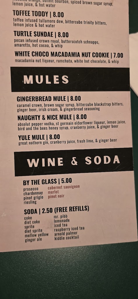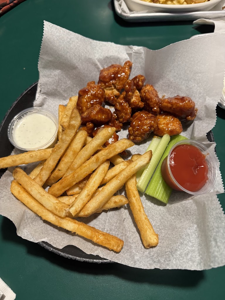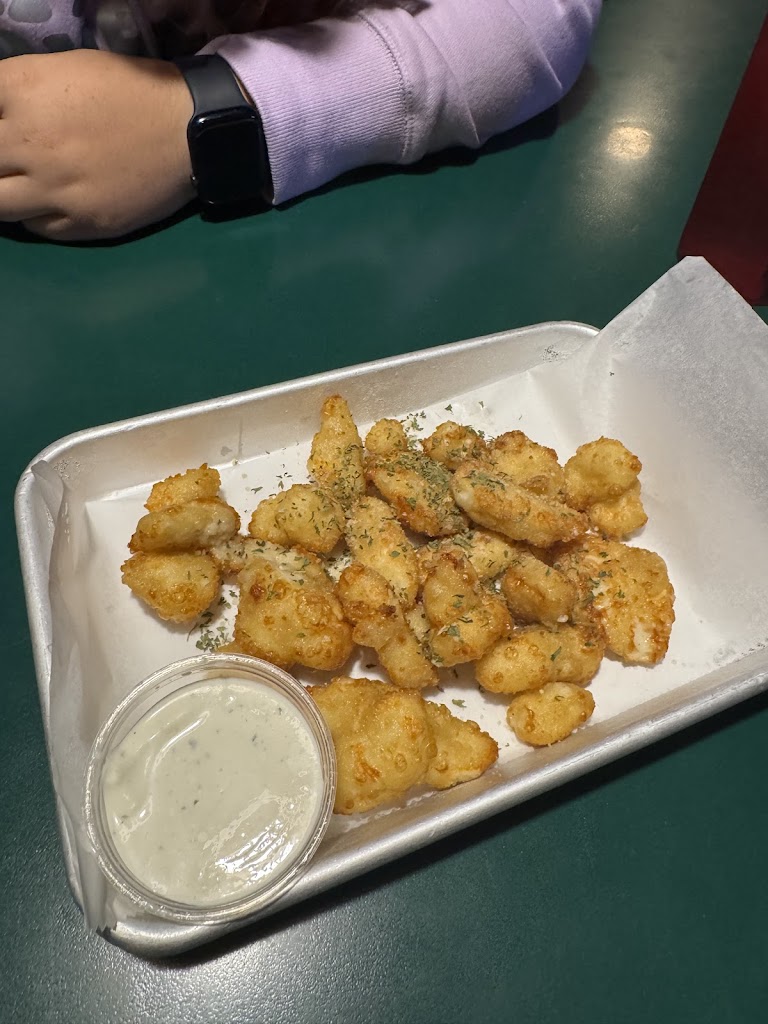 The food was wonderful and reasonably priced. It’s definitely not your “average” bar food! The portions are large. I recommend the white truffle garlic cheese curds and the wings!