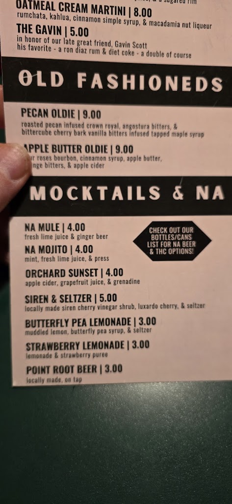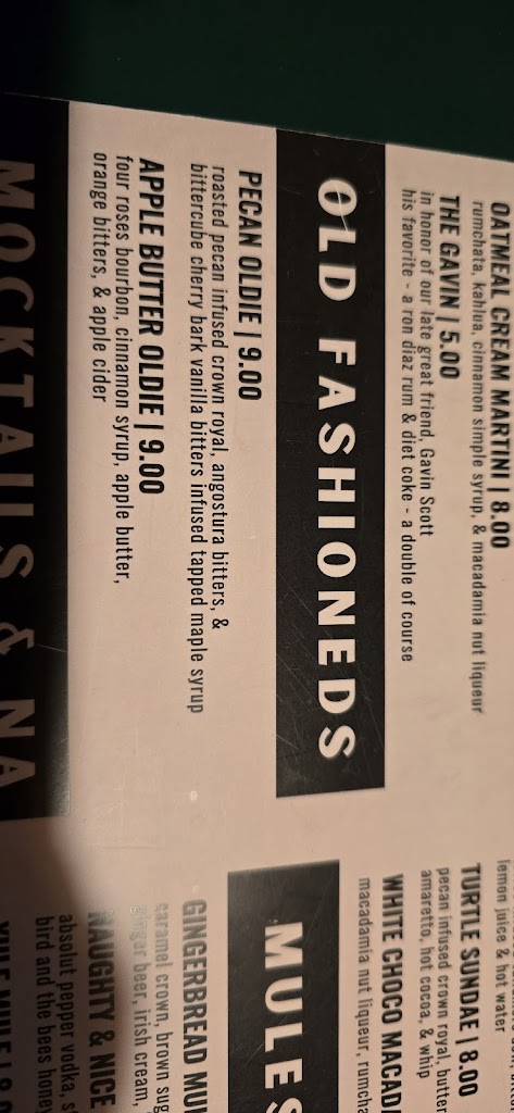 Good old fashions. Got in too late to try the food. Great service. Will be back.