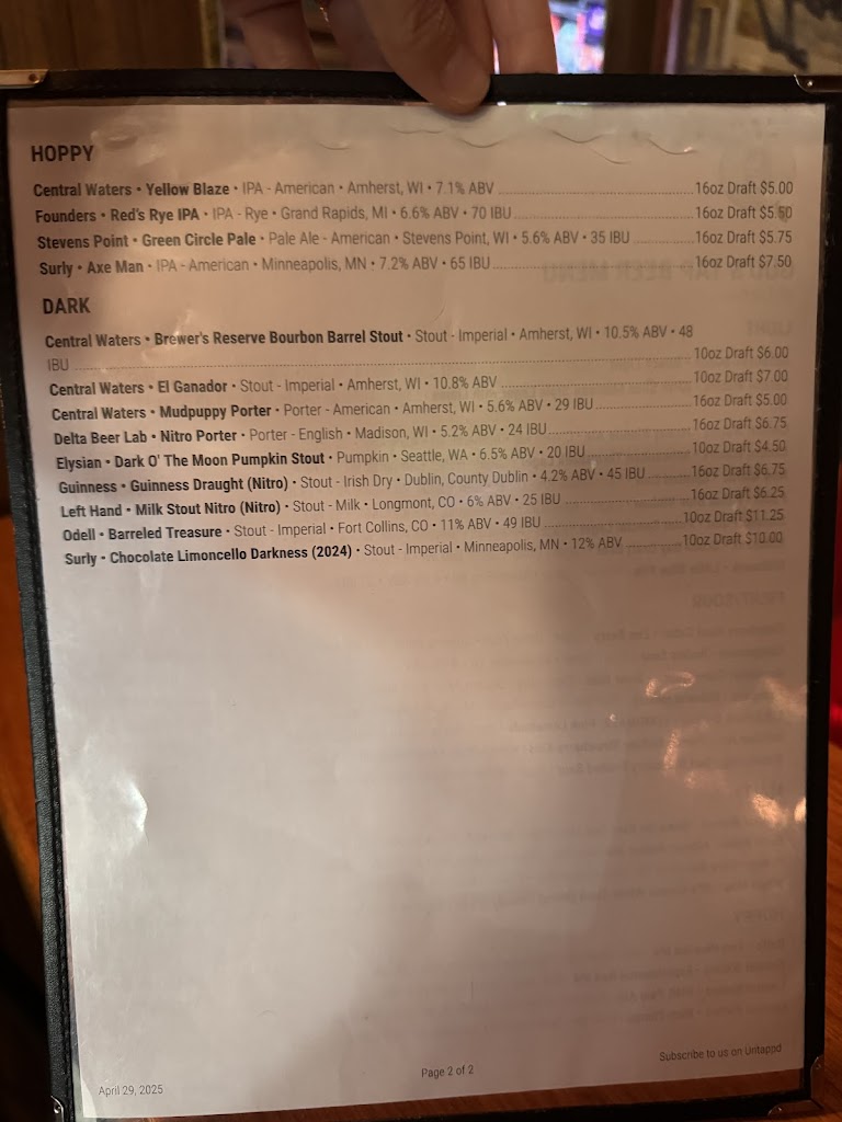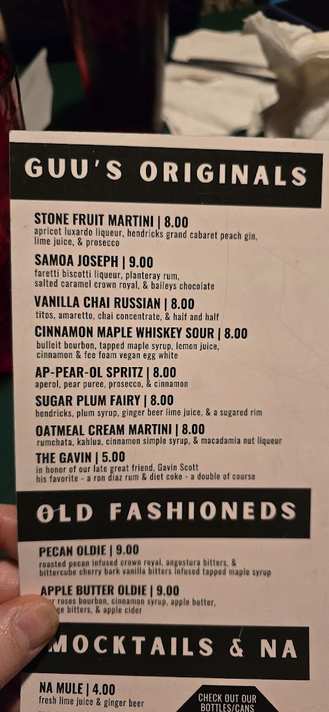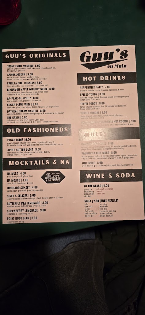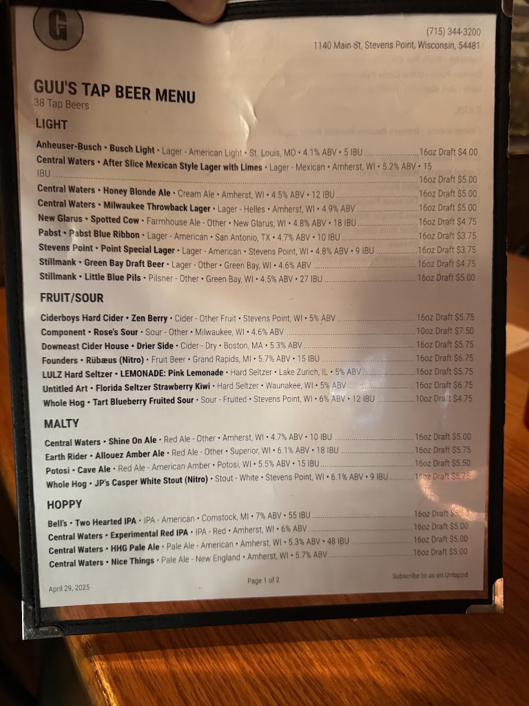 Best bar in the Stevens Point area! Must try the truffle parmesan cheese curds. The staff is absolutely wonderful! So kind and helpful for giving recommendations on food and drinks. Wide variety of local beers and specialty cocktails. If you didn’t go to Guu’s on Main during your visit to Ste Po, you MISSED out big time.