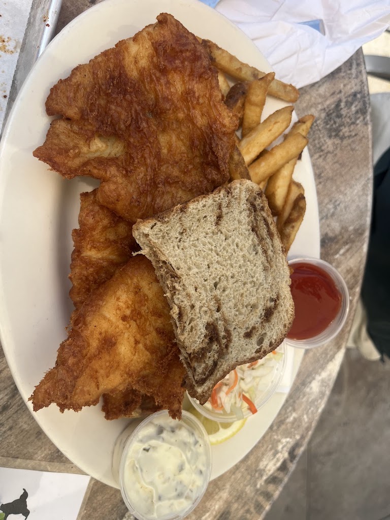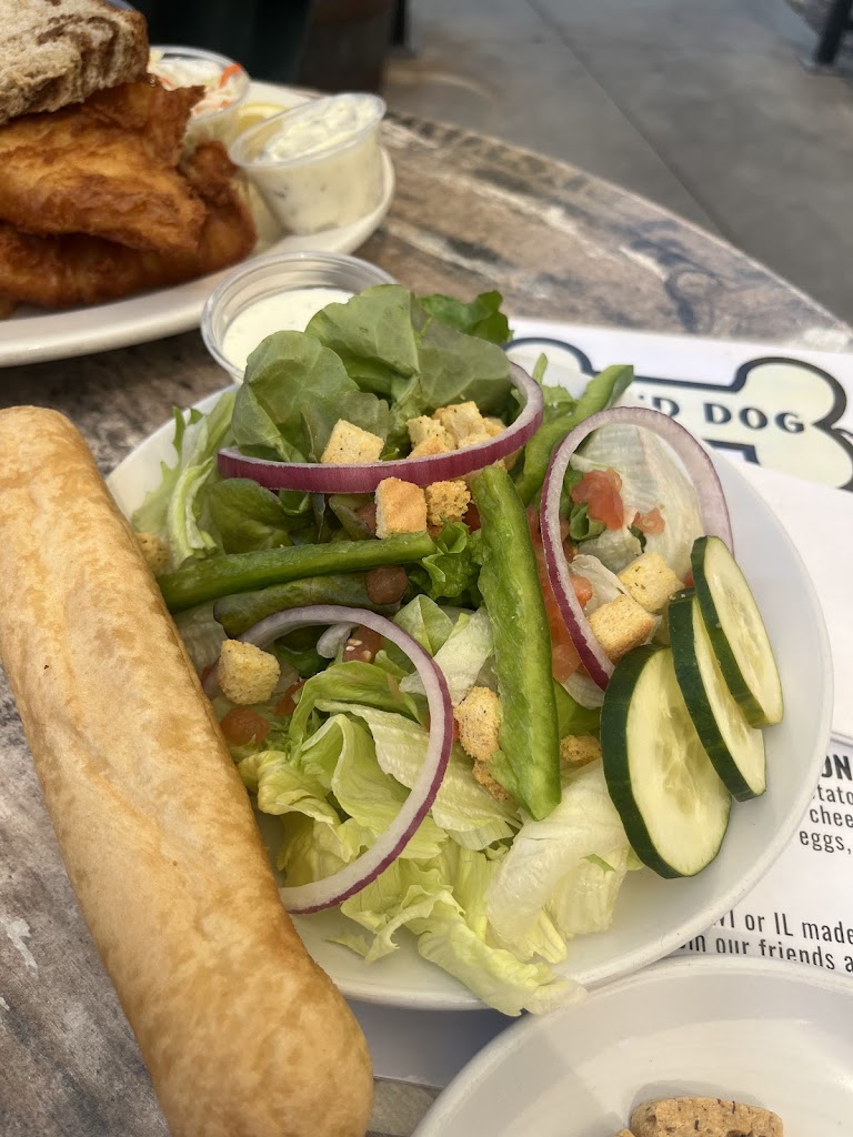 Stopped by for lunch and there is outdoor seating that allows dogs. The cheese curds were seasoned deliciously and the puppy menu was adorable. Only downside was that every piece of the bread was bland. The fish fry was the star of the show as there were huge portions and fresh fish, with a nice light fried crunch.