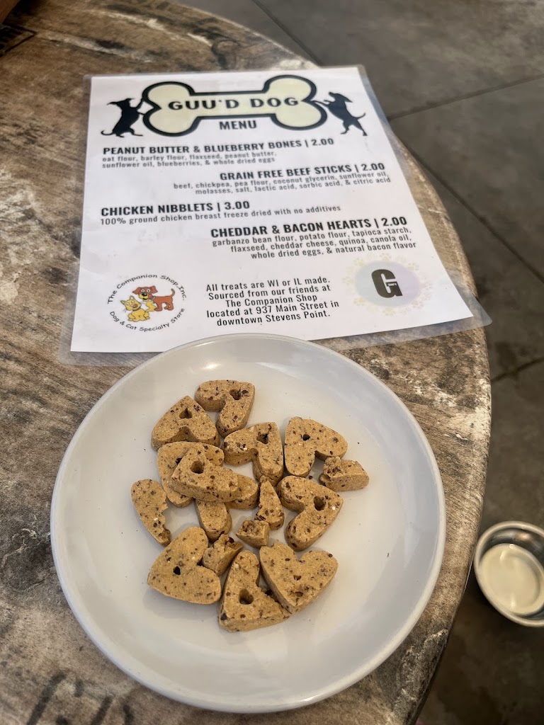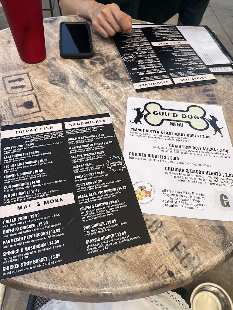 My Bday is July 5th and my wife and I decided we would go watch the fireworks at the festival. We got rained out and watched them from the car...the one shining moment in my whole birthday is that I got to eat with my wife and my puppy because the people at this great business actually opened their backyard simply for us. They said you can bring them throughout the bar to the back patio. They had a puppy menu and the waitress made it seem like it was no big deal to open one area to just me my wife and our puppy. We went to every other restaurant in this area and when I say every other place I MEAN it! The food was omg amazing and there was a puppy menu. I can honestly say that when I come to stevens point againt I will not go anyplace else but here.