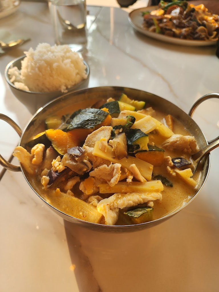 In reference to my initial visit to the new establishment, I must express my disappointment, despite my longstanding patronage of the original location during my undergraduate years. I accompanied a friend, and we both ordered dishes that deviated from our usual vegetarian preferences. While I opted for a Tom Kha with Tofu and Red Curry Fried Rice to limit my meat intake, my friend chose a banh mi with beef. Additionally, I intended to order a tofu banh mi for my girlfriend at home.