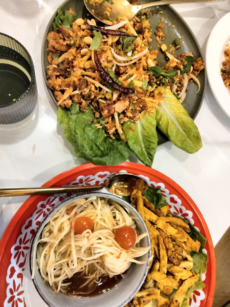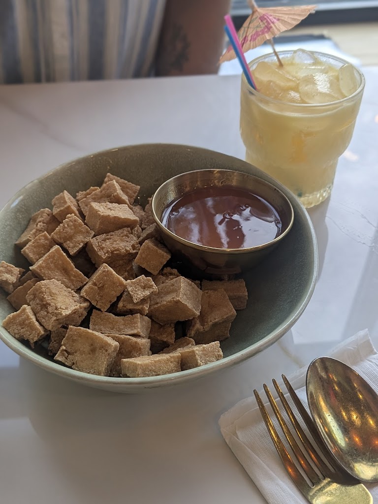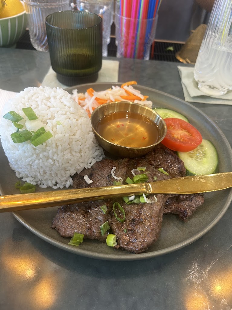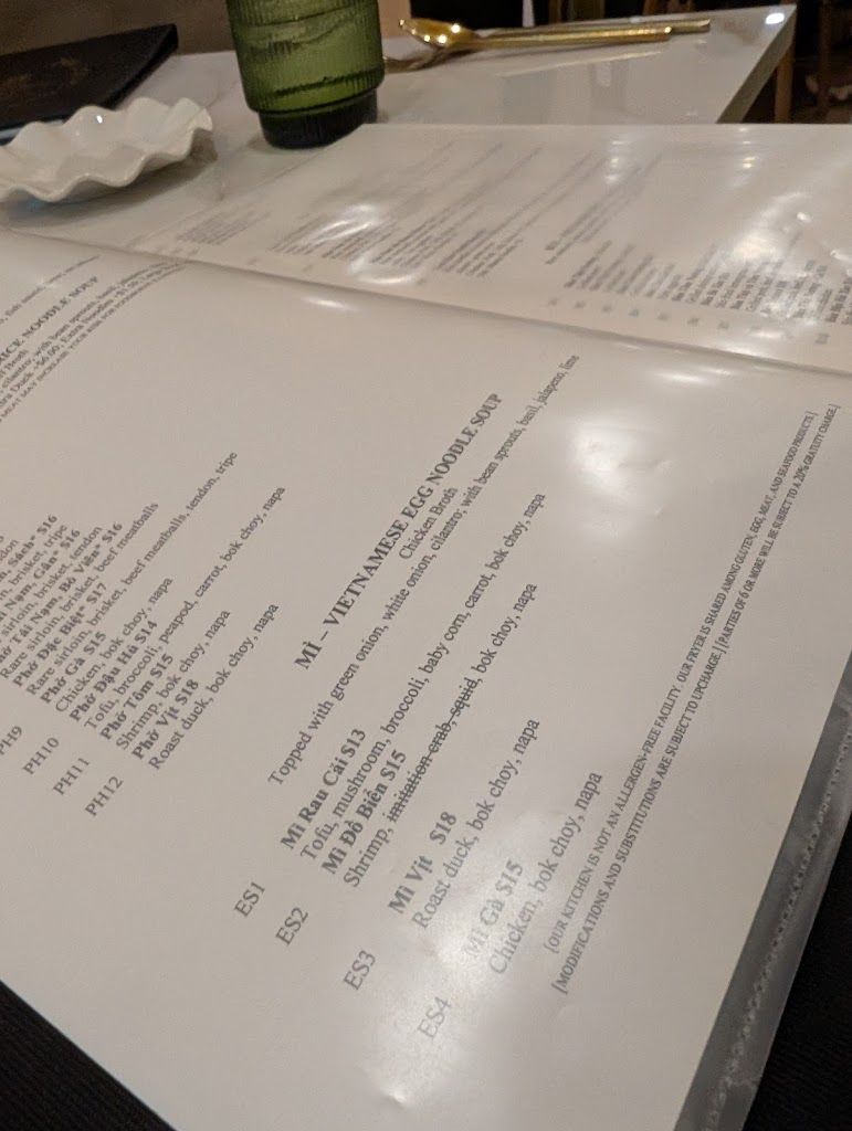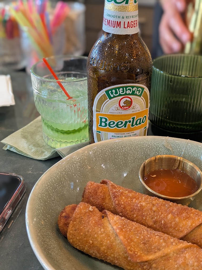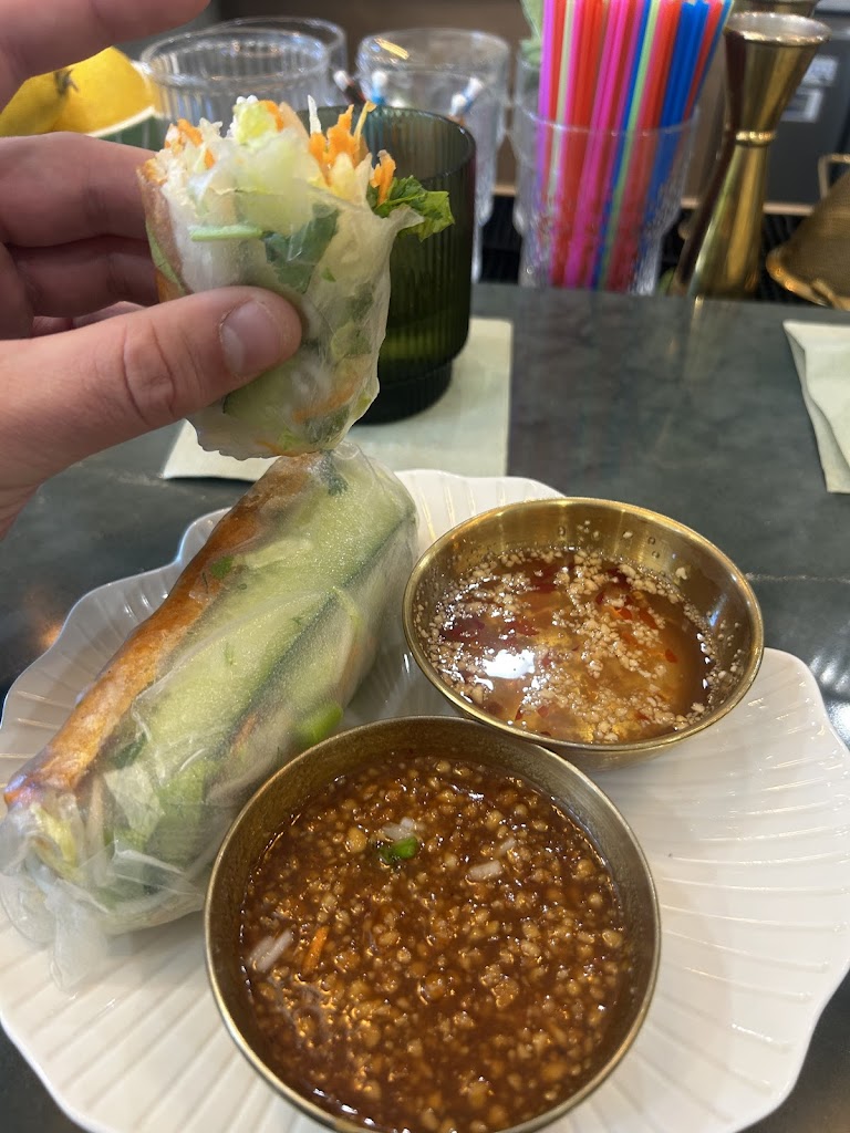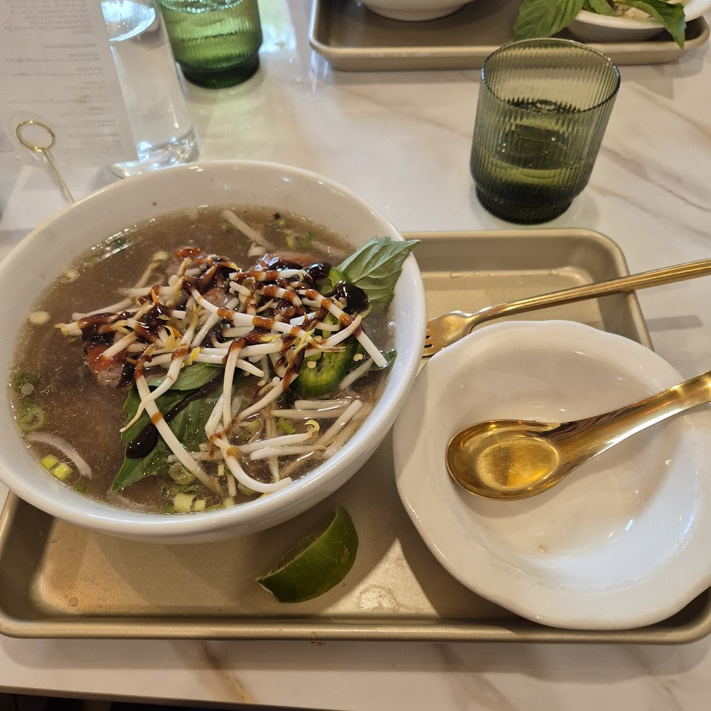 The spring roll with pork egg roll was phenomenal. Incredible flavor, super fresh, and just different. Sweet, fresh, and savory all in one. The Thit Bo Nuong (R3) was SO good. Reminded me of being back in Vietnam. I got the fried chicken wontongs to go! I can only imagine they will be even better. The lychee lemonade with fresh lychee was top tier. And Sam Y, my server at the bar, was busting his butt while staying attentive to my needs. 10/10 would recommend. Oh, all of that was also only $40 before tip.