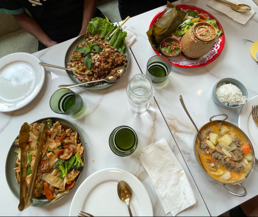 I feel sorry for the college kids that think they're dining at an authentic Viet Asian restaurant. The prices are high, but loading up dishes with potato and green beans is inappropriate. Perhaps it's a Laotian think to glut your meal with potato, but every Viet restaurant I've eaten at in 40 years always had plentiful stir fry Asian vegetables, and not a large boiled potato cut into massive chunks to make the dish look plentiful. The curry was excellent, but it was covering green beans and potato, and I feel ripped off. Add 9$ for a glass of house Pinot Noir, and I won't go back there again.