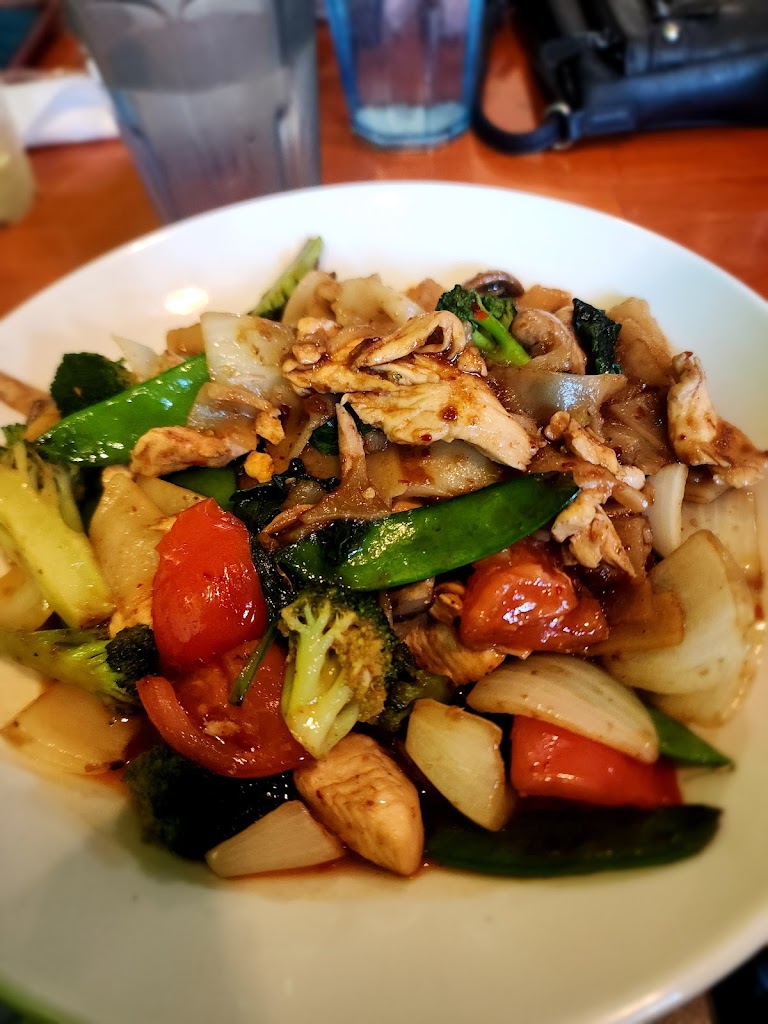 This is the first time I have eaten here since 2020, and I was disappointed. We ordered crab wontons and those were tasty and so was the Thai Iced Tea. We ordered four entrees, the Pad Thai with chicken and Pad Lao with pork were good. We also ordered Squash Curry with tofu, and that was flavorful but had very overcooked tofu and minimal squash and only one sprig of basil. We also ordered Pad See Ew with tofu, and probably should’ve sent this dish back to the kitchen—the tofu was so overcooked that it was crunchy and hard to chew and the egg was very unappetizing. I didn’t send it back because our waiter never came back to ask us how our food was. We waited a really long time for our food to arrive. The hostess made a point of telling us that our food would be out shortly after tables around us, who were seated 20-30 minutes after us, were getting their food. We were seated at the front of the building and we noticed that our waiter also had tables in the back of the building—and I think this was the reason why our waiter never visited our table after he delivered our entrees until the very end to wrap up leftovers and give us our check.