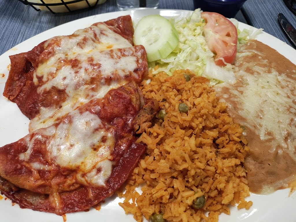 The food was delicious. In our group we had: Burrito Dinner, Chicken Enchilada Dinner x 2 - one red sauce, one green, Fajitas (forgot which kind), Guacamole, and one of the Whole Tilapia dinners that came with shrimp. I had the enchilada dinner with red sauce and a Steak Burrito on the side. HA! The burrito is massive. Of course I filled up on chips and some of the guac, so I ate half the burrito and a third of the enchilada plate. Had the rest for lunch yesterday. Everything I had was just delicious and the meats were all very tender. The guacamole was whipped very smooth and made fresh. The person who ordered it said "it's missing something" but I did not find that to be true. The chips that were served with it were a little soft. It was a little weird, still tasted good, but maybe not fried quite long enough? The only issue was the person who ordered the tilapia didn't get what she expected. It was apparently one of the two (maybe 3) tilapia items that didn't explicitly say "fried." So what she received was not what she was expecting. She didn't complain, nor send it back, but it threw off her meal. It came with a LOT of shrimp, and she had also ordered a soup which came with shrimp, plus the rice and salad, so she far from went hungry. Just be aware it is deep fried tilapia, not pan fried.