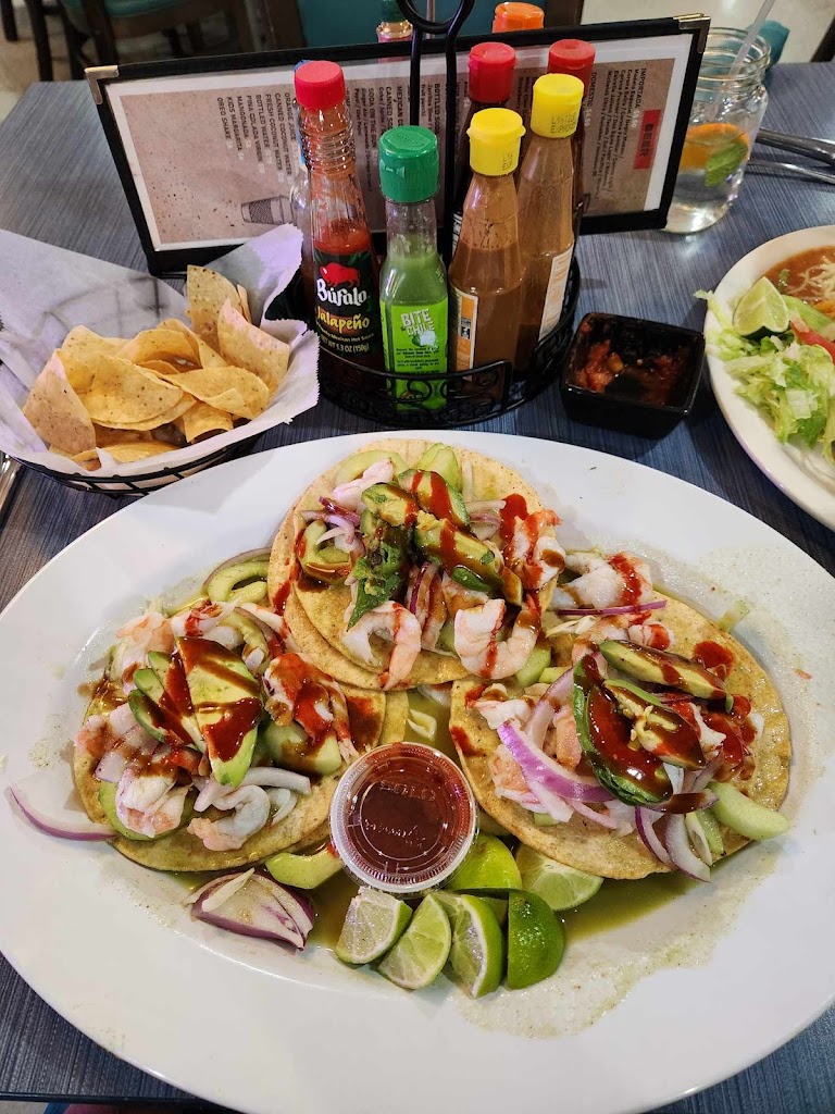 I had the 3 Taco Dinner and a Silver Margarita along with complimentary chips and salsa. Everything was delicious. Service was prompt and courteous. The place was clean and friendly.
