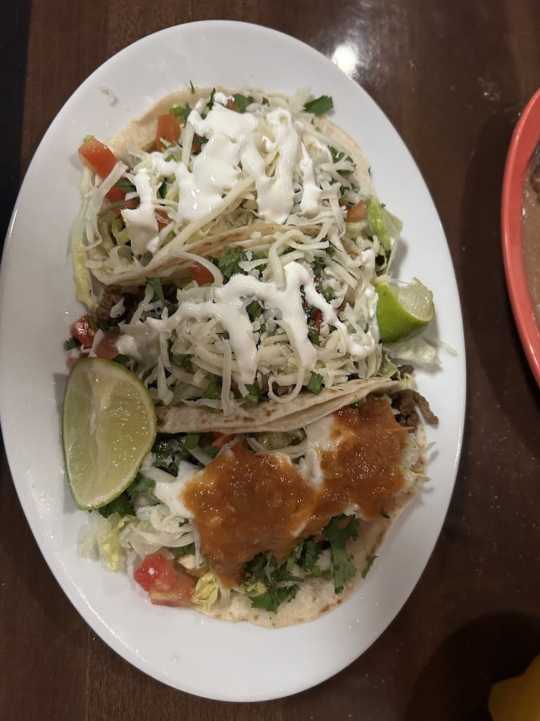 Never saw this restaurant until tonight when I was driving by. Decided to stop in and see what it was like. Quite a lot of seating but only other customers was a family of 4. Seated right away with clean menus which had a very good selection of meals and options. Separate drink menu of alcoholic drinks and beer. Chips and warmed salsa served right away. Ordered al pastor tacos with cilantro and onion. Forgot to choose flour tortillas (vs. corn tortillas) as did the waitress. For only having one other set of customers in the restaurant (who had already been served), it took a relatively long time to receive the meal. 3 very full tacos as ordered. The pork was not shredded - it was ground up. Meal was very good; came with a green and a red salsa for the tacos along with 4 lime wedges. Could only finish 2 tacos. Brought home the 3rd taco along with a slice of tres leches cake.