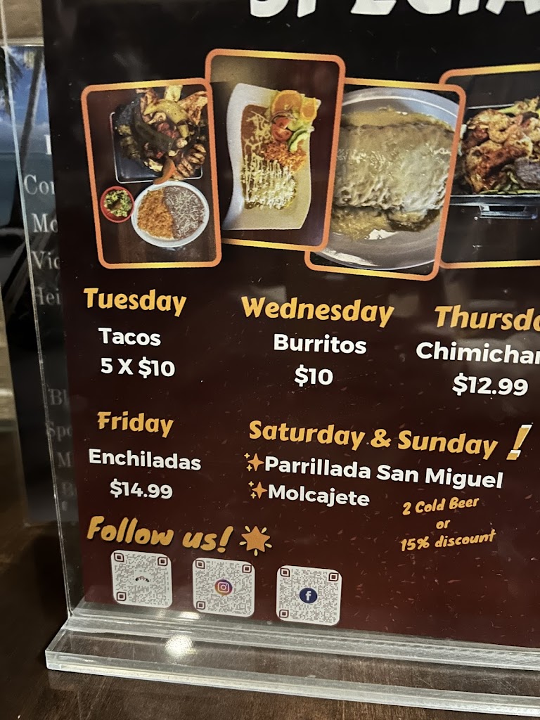 Food came out hot. Service was great. Reasonable prices. Daily specials. It will be our new go to for Mexican food done right.