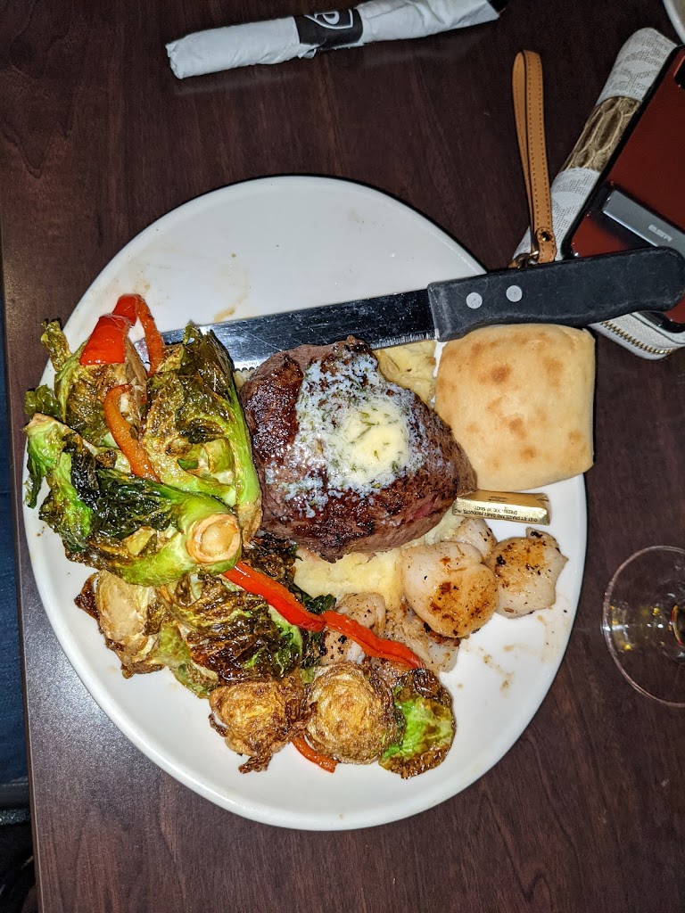The food was attractively plated, and the steak easily stole the show. Perfectly tender, flavorful, and seasoned just right—it was one of those meals you remember. The Brussels sprouts were another win, cooked just right (though a little more glaze would have made them even better). On the flip side, the broccoli lacked any real flavor, and the garlic asparagus didn’t leave much of an impression.