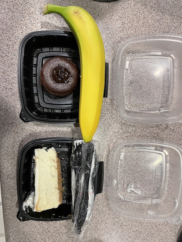 Great food but price per serving can be a bit dicey. See photos for $9 cheesecake slice and similar pricing for lava cake. Banana and their provided (and much appreciated) cutlery for scale.