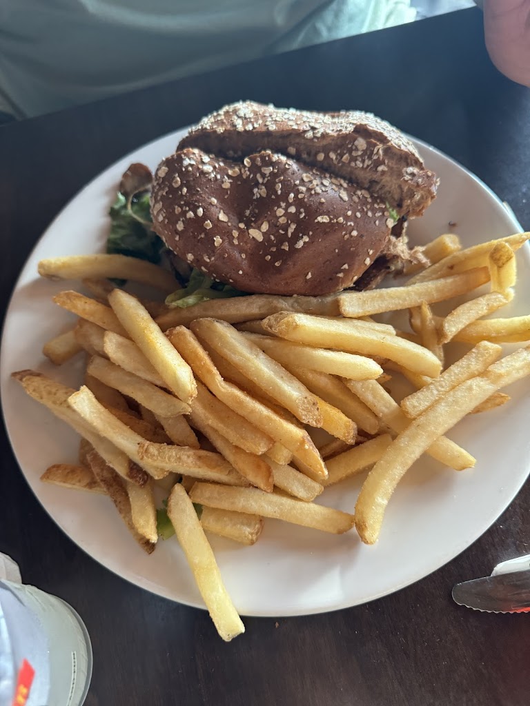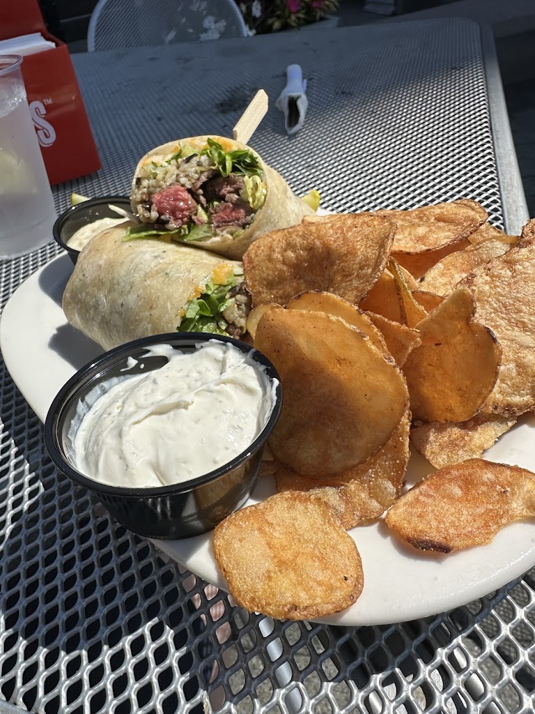 Great friendly staff, I had the elk burger. It had smoked gouda and a garlic aioli with some greens and tomato too. My mom had the BLT supreme, basically a BLT on steroids 😂. And her coworker we were with had the buffalo chicken wrap.