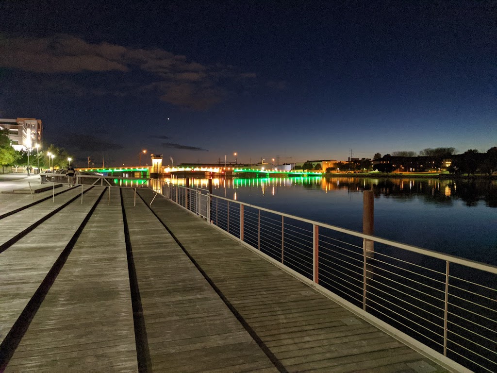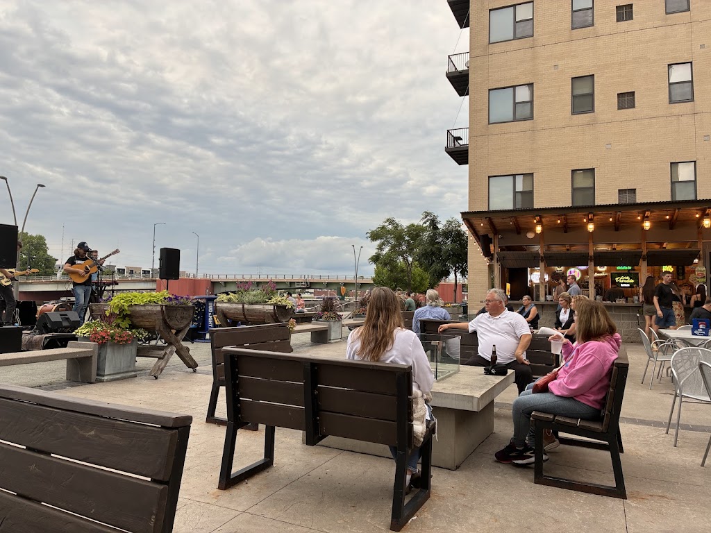 A great place to go to eat or just have a drink, with a beautiful view of the Fox River in Downtown.