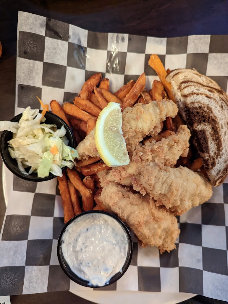 Good chicken tenders, very unique mozzarella sticks, and a very good garlic sauce, overall a good experience. The waiters were great and I enjoy the atmosphere of the restaurant, especially the combination of the view of the river with the cozy atmosphere inside.