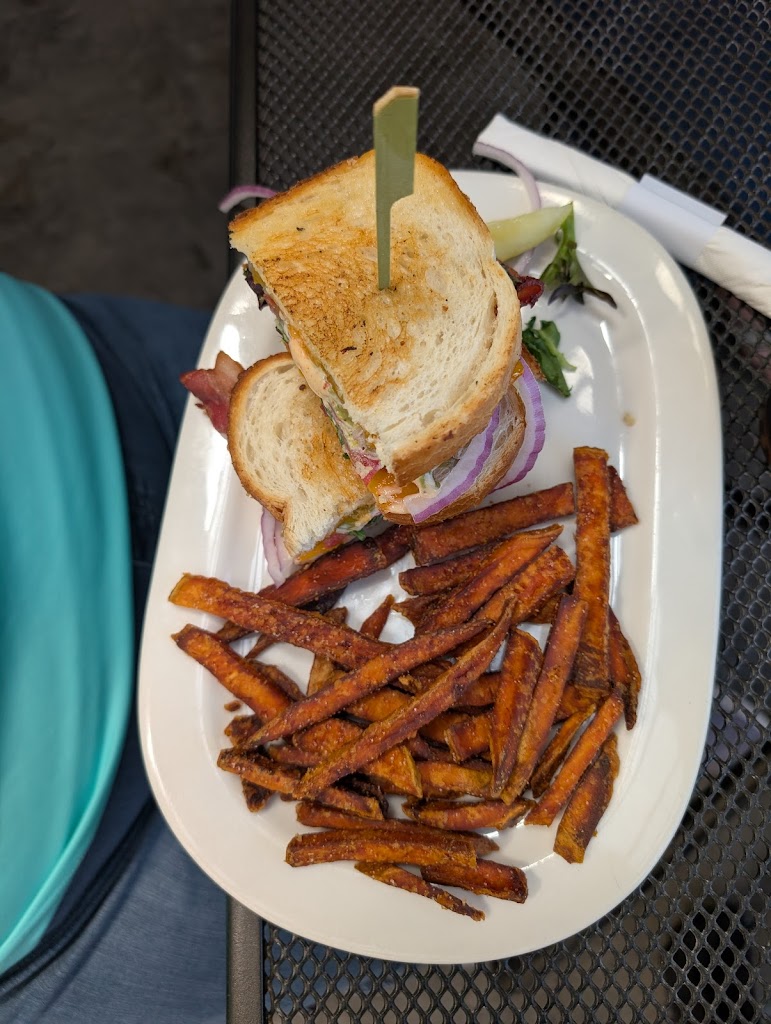 BLT was sub-par, sweet potato fries were not great. Service was good and the view was wonderful.